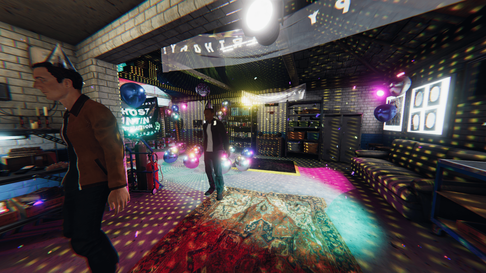 Dieses Spiel hat am Wochenende Geburtstag und deshalb befinden sich nun eine Disco in der Garage.